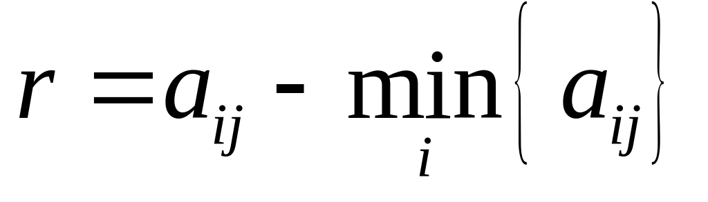Критерий Севиджа. Опирается на принцип минимакса – принцип максимальной осторожности. В качестве исходных данных рассматриваются не исходные оценки альтернатив – платежи, а риски, связанные с выбором альтернативы.