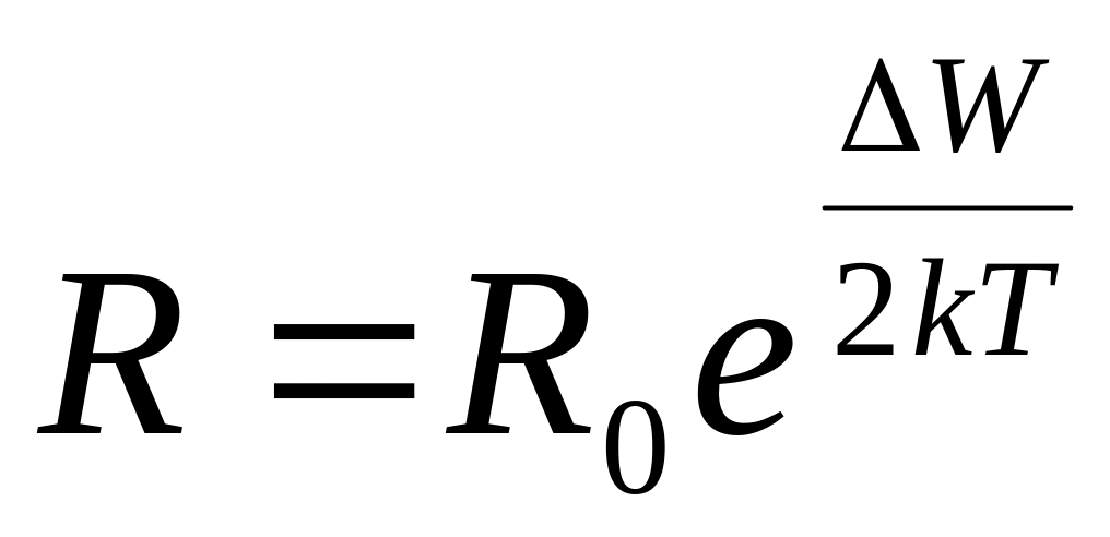 Эта формула получается путём несложных преобразований из выражений (6.3), (6.5), (6.13) и (6.2) с заменой l/(Sn0eb) = R0, где n0 – концентрация носителей тока в полупроводнике при температуре Т .