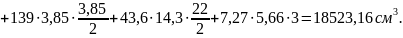 43,6·11+(139 – 43,6) ·3,85 = 846,89 см2;