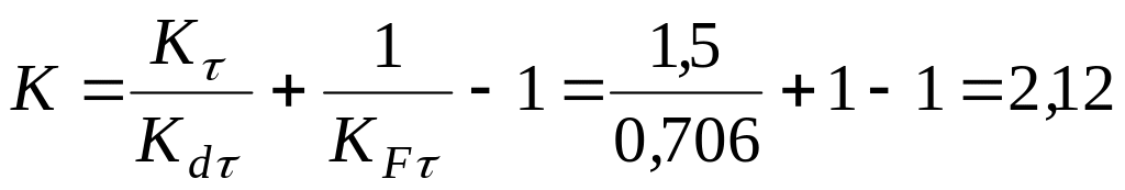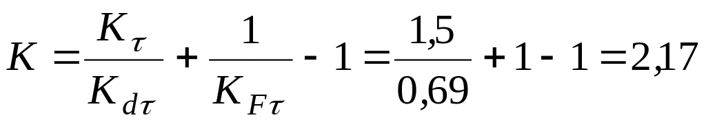Коэффициент снижения предела выносливости детали по касательным напряжениям: