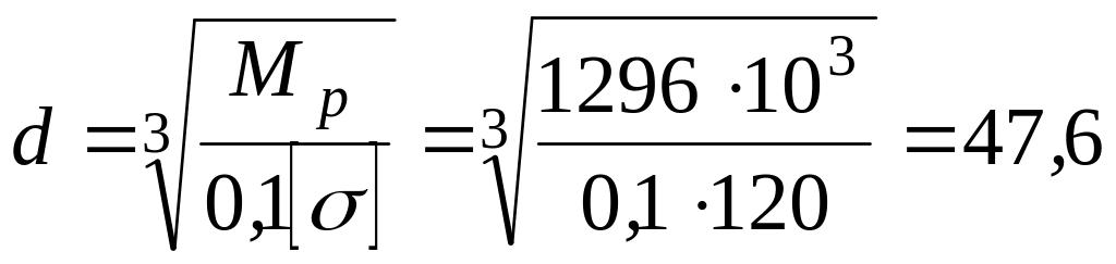 Диаметр вала при расчете по III теории прочности: