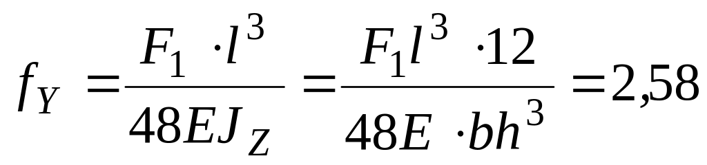 - прогиб стержня соответственно в