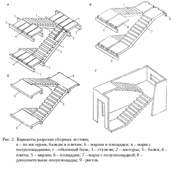 Варианты разрезки сборных лестниц представлены на рис. 2.