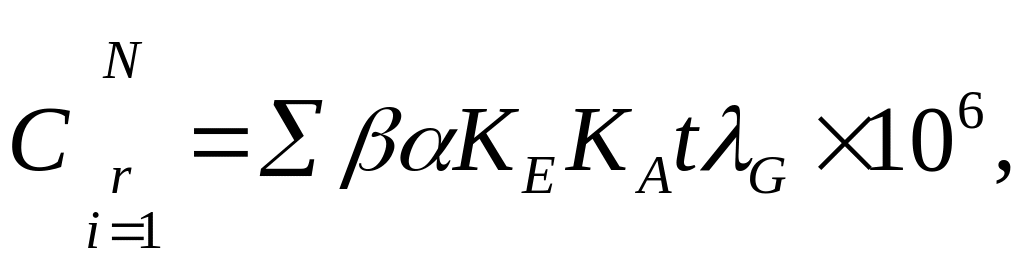 Множитель, переводящий коэффициент Cr потерь от реализации опасности к потерям на 1 млн. возможных событий, равен 106.