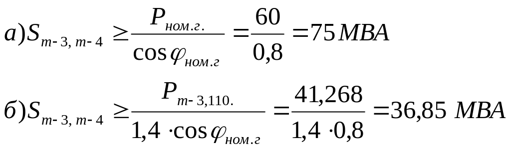 Мощность трансформатора Т-3 определяется из условий нормального и наиболее загруженного режимов: