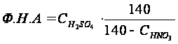 Нитрующая способность смеси серной и азотной кислот характеризуется фактором нитрующей активности (Ф.Н.А.):