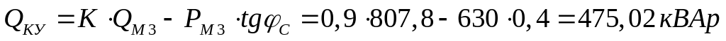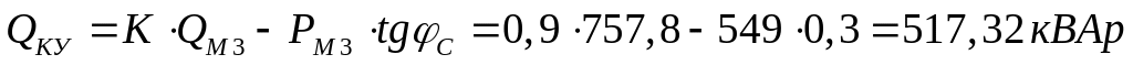 К – коэффициент, учитывающий несовпадение по времени наибольших активной нагрузки энергосистемы и реактивной нагрузки промышленного предприятия. К=(0,7-1).