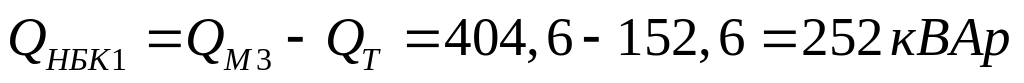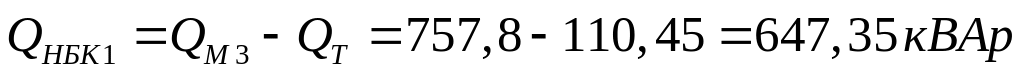 - мощность батареи конденсаторов, которая рассчитывается из условия минимального числа трансформаторов.