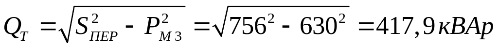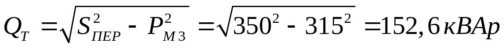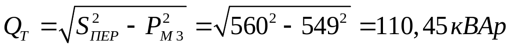 Определяем реактивную мощность, которую можно передавать через выбранный трансформатор: