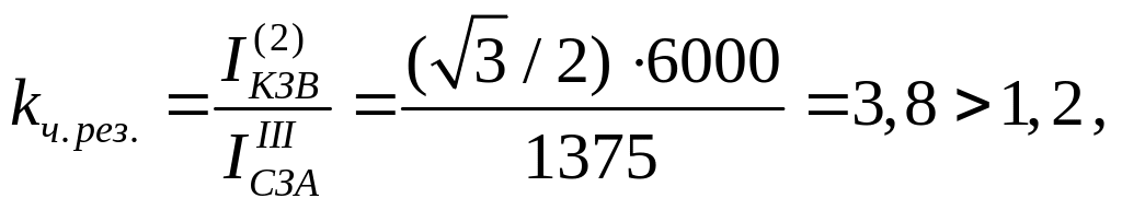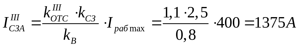 где =1,1…1,2; =2,5 - коэффициент самозапуска; =0,8– коэффициент возврата; - максимальный рабочий ток защищаемой линии.