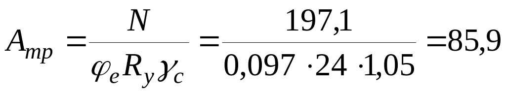 Коэффициент устойчивости φе=0,097, а требуемая площадь поперечного сечения двутавра