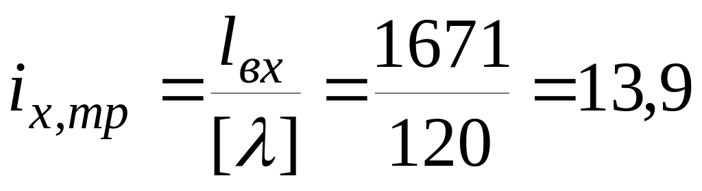 Кроме того, необходимо дополнительно отыскать требуемые радиусы инерции сечения, исходя из условия, что предельная гибкость стержня равна 120 ([6], табл. 32 при α=1):