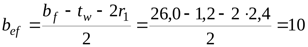 Расчетная ширина свеса полки bef определяется по п.7.3.7 [6], как расстояние от начала внутреннего закругления до края полки: