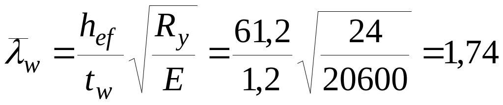 В соответствии с требованиями п.9.4 [6] необходимо выполнить проверку устойчивости стенок и полок двутавра верхней части колонны. Вычисляем условную гибкость стенки (п. 9.4.2 [6]):