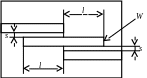 Топология двухзвенного ППФ, выполненного на связанных МПЛ, приведена на рис.12, где l длина отрезков связанных линий, приближенно равная четверти длины волны в МПЛ на средней частоте f0 рабочего диапазона частот; W - ширина МПЛ; s - ширина зазора. Вход и выход фильтра нагружены на сопротивление 50 Ом. Выбор материала подложки и толщины проводящего слоя проводится в соответствии с заданным вариантом согласно табл.2. Частота f0 указана в той же таблице.