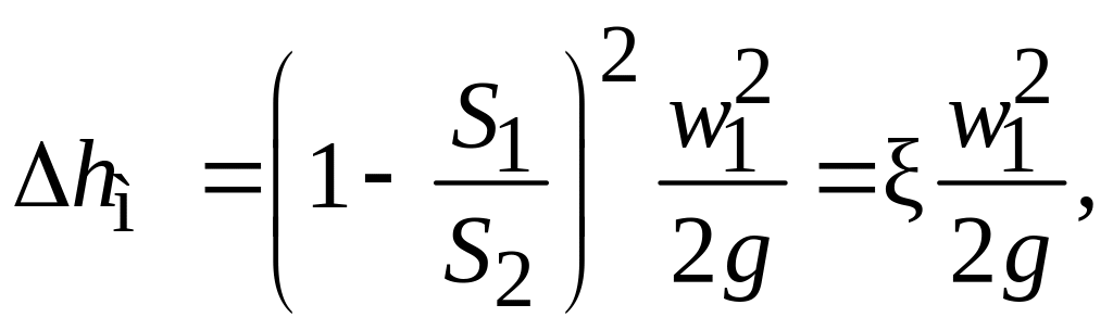 Значение обычно определяют экспериментально, и его значение зависит от конфигурации местного сопротивления. Для одного случая, для внезапного расширения потока, значение может быть определено теоретическим путем: