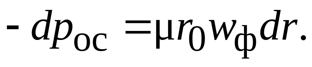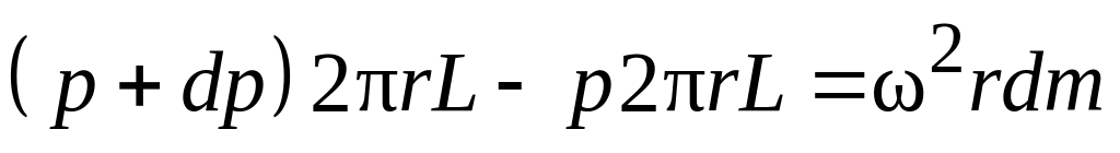 Для определения p выделим в барабане центрифуги на радиусе r элементарный кольцевой слой толщиной dr, высотой – L (рис. 4.17). Запишем условия равновесия сил для этого элементарного объема суспензии с плотностью :