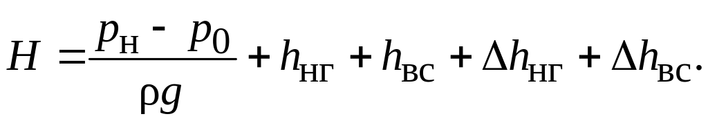 В случае равенства давлений в питательном и напорном баках уравнение упрощается и принимает вид: