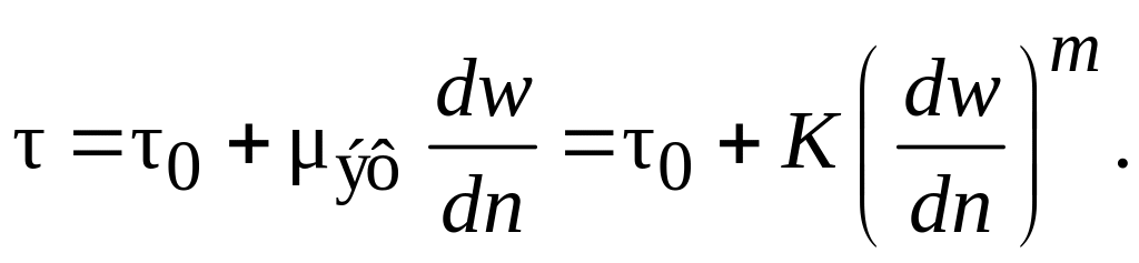 Встречаются случаи, когда процесс течения характеризуется с аномалией вязкости (рис. 2.1, позиция, обозначенная пунктирной линией). Для таких сред реологическое уравнение имеет вид: