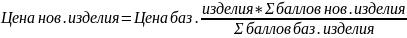 Рассчитывается цена каждого параметра нового изделия, для чего цена одного балла умножается по параметрам построчно.