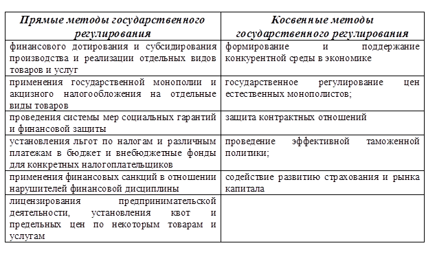 Таблица 1. Методы государственного регулирования экономики