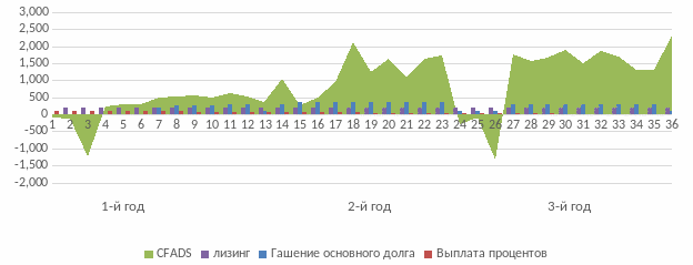 На Рисунке 8.4. приведен график кредитных выплат, наложенный для наглядности на CFADS.