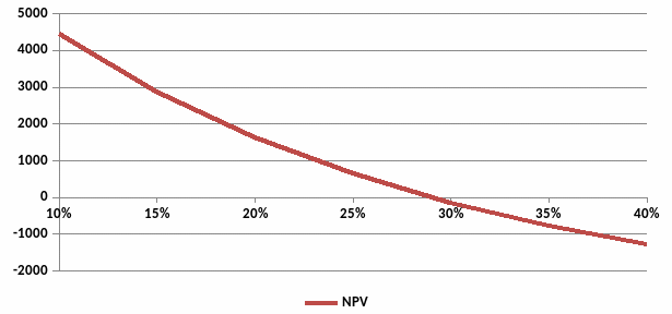 Как видно из Рисунка 8.7., проект имеет значение IRR, равное 28,9%, что больше принятой ставки дисконтирования.