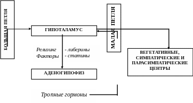 Особенностях выработки тропных гормонов шишковидного тела, гипофиза и серого бугра гипоталамуса.