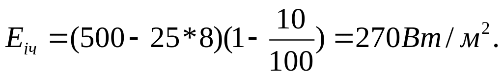 z - коефіцієнт нерівномірності опроміненості, z = 1,4... 1,6 для КСС косинусного і глибокого світлорозподілу; z =1 для широкого світлорозподілу.