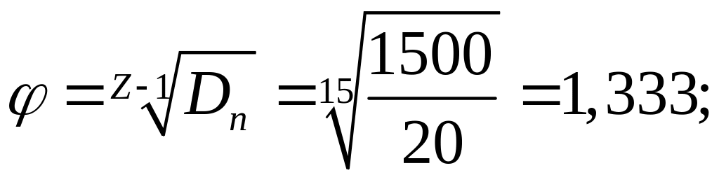 Поэтому прежде чем приступить к построению графика частот вращения шпинделя, найдем промежуточные значения скорости вращения. С этой целью определим знаменатель геометрического ряда