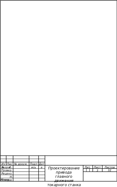 Приведены кинематический и проектировочный расчеты привода, позволившие определить геометрические размеры валов, зубчатых колес, шкивов, подшипников и других деталей необходимые для разработки эскизной компоновки привода. Разработана эскизная компоновка коробки скоростей и шпиндельного узла.