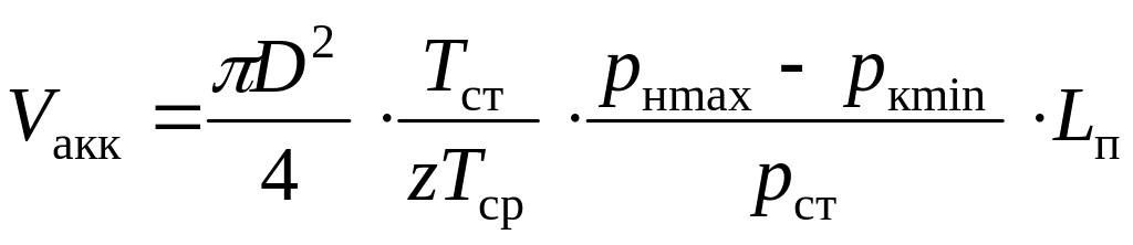 Бұл өрнектегі рн және рк қысымдар компрессор стансаларының шығысы мен кірісіндегі қысымдар. Соңғы аралықтың аяғында компрессор стансасы жоқ. Сол себепті соңғы аралық үшін рк ретінде соңғы стансаның (немесе ГРС-тің) кірісіндегі қысымды алу керек. Ол қысым тұтынушылардың сұранысымен байланысты (1,2МПа-дан көп емес). Әдетте тұтынушылар газды біркелкі пайдаланбайды (түнде аз, ал күндіз көп пайдаланды). Сондықтан газөткізгіштің соңғы аралығы газ қорын жинақтаушы ретінде де қолданылады. Соңғы аралықтың газ жинақтау қабілеті мына өрнекпен анықталады: