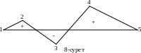 (88) – формуладан мынандай қызық жағдайды байқауға болады: 1-2-3-4-5 рельефті трассалы газ құбырының өткізу қабілеті ұзындығы мен диаметрі сондай болатын көлденең тегіс трассалы газ құбырының өткізу қабілетінен аз болады (8-сурет). Трасса кескіні түрінің өткізу қабілетіне әсері газ қысымының аралық басында соңына қарағанда көп екендігіне байланысты.