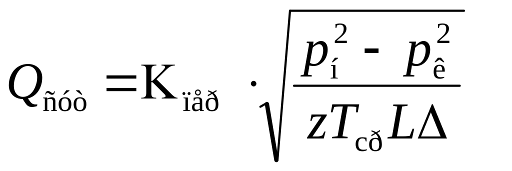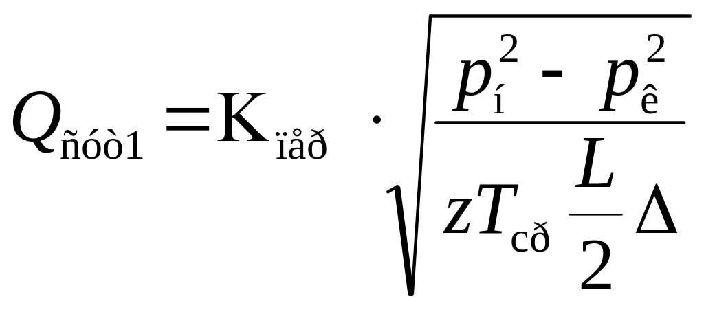 Егер аралықтың ұзындығы мен қысымдардың мәндері алдын-ала белгілі болса, онда магистралды газ құбырының тәуліктік коммерциялық өткізу қабілеті (59)- коммерциялық шығын формуласынан табылады: