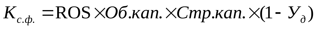 Об.кап. – показывает сколько раз за период придет выручка, Стр.кап. – показывает долю СК в активах. Перепишем формулу: