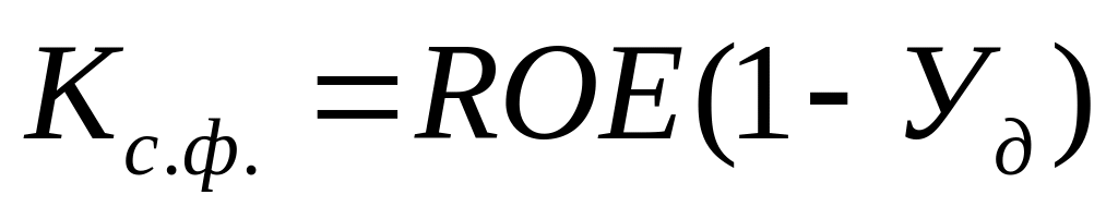 Определяет способность предприятия обеспечивать расширенное воспроизводство за счет собственных источников. Уд. – удельный вес дивидендов в чистой прибыли (дивидендный выход). Если развернуть по формуле Дюпона, то получим четырех факторную модель, характеризующую самофинансирование: