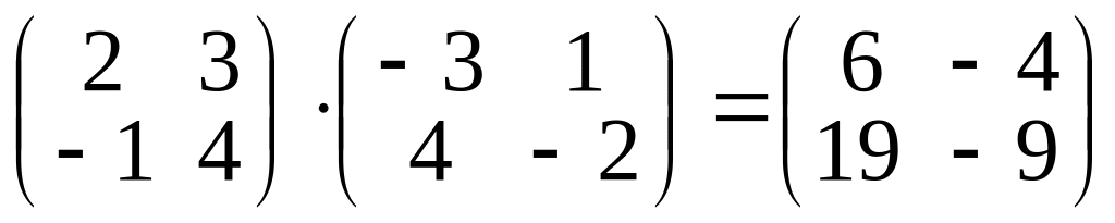 В качестве возьмем кольцо целых чисел и рассмотрим произведения матриц