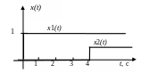 В рассматриваемом примере изменения входного воздействия x(t) возникают в моменты времени t = 0 и t = 4 c.