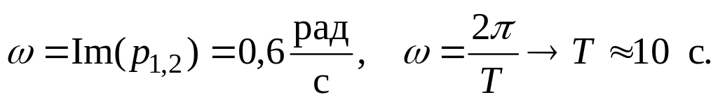 Оценим колебательность процесса. Если величина действительной части комплексного корня характеризует скорость затухания (расхождения) процесса, то величина мнимой части определяет частоту собственных колебаний – ω.