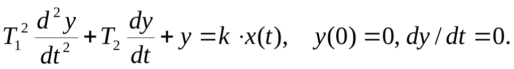 Дано: дифференциальное уравнение типового звена и нулевые начальные условия: