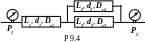 9.1. Визначити витрати на кожній з ділянок у новому сталевому звареному трубопроводі, що складається з 3-х ділянок, два з яких з'єднані (ZZ) послідовно, а третій йде паралельно їм. Діаметри ділянок d1=20 мм, d2=40 мм. Довжина ділянки L2=100 м. Втрати на місцевих опорах становлять 20% від втрат на тертя. Різниця тисків (Р1-Р2) на кінцях трубопроводу дорівнює P.