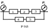 9.8. Складний трубопровід, утворений з'єднанням мідних труб однакової довжини L=2м. Визначити втрати напору на ділянках 1 і 5, якщо різниця тисків дорівнює Р1-Р2. Втратами тисків на місцевих опорах знехтувати.