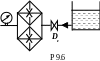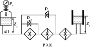 9.6. Визначити коефіцієнт опору вентиля діаметром 50мм, що під дією напору Н при витраті 1 л/с створює на виході з гідравлічної мережі тиск Р2.