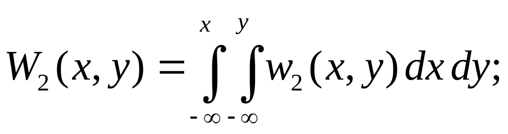 Функцией распределения W2(x, у) системы двух случайных величин X, Y (иначе, совместной или двумерной функцией распределения) называется функция двух переменных х и y, характеризующая вероятность одновременного выполнения двух неравенств Х<х, Y<y