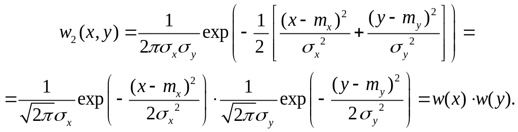 Если Rxy = 0, т. е. случайные величины X и Y не коррелированны между собой, то плотность вероятности w2(x, у) распадается на произведение двух одномерных плотностей вероятности
