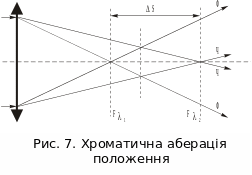 Кількісно характеризують хроматизм положення величиною поздовжньої хроматичної аберації (рис. 7).