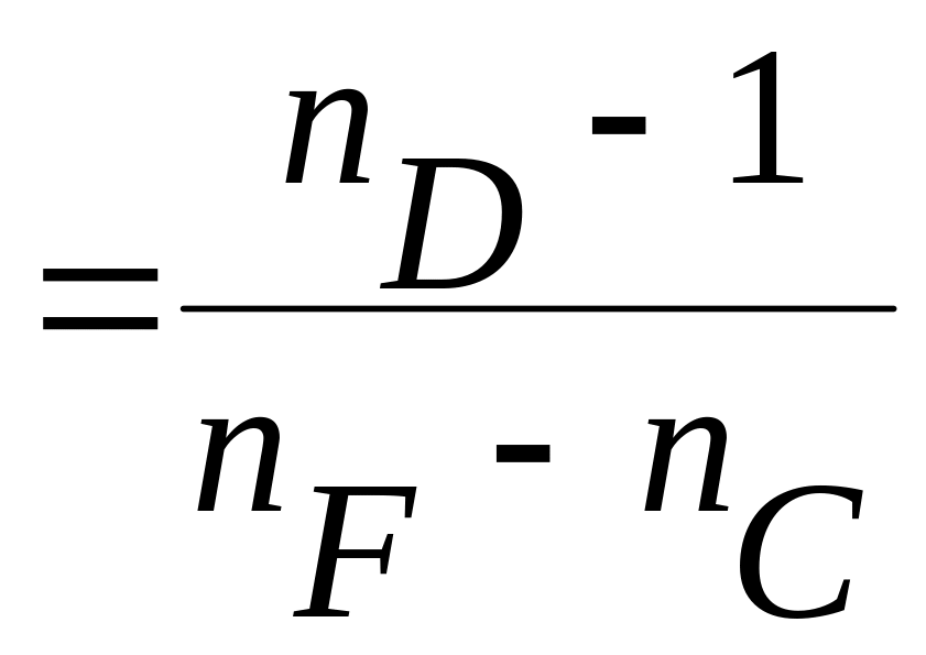 де nF — показник заломлення для випромінювання з довжиною хвилі F = 486,1 нм (синя лінія водню, F), а nC показник заломлення для випромінювання з С= 656,3 нм (червона лінія водню, C).