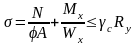 Якщо опорне кільце опирається на окремі стояки (колони) башт, то воно працює на згин та стиск і розраховується за формулою
