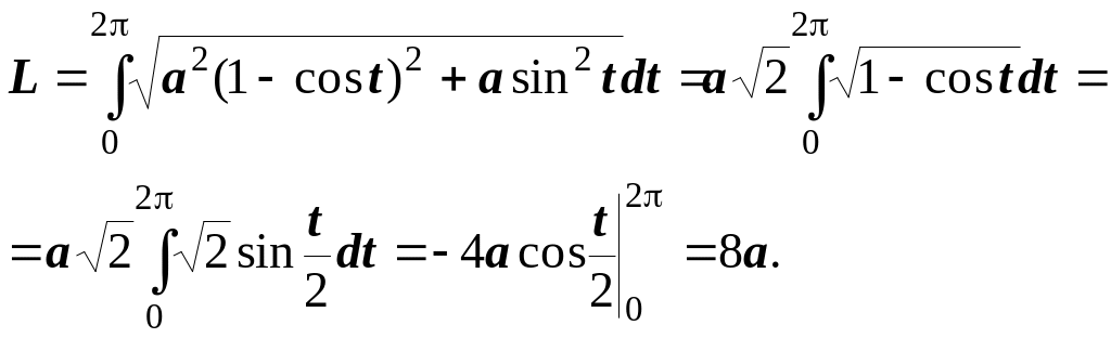 2. Обчислити довжину однієї арки циклоїди x=a(t-sint), y=a(1-cost) (рис 6.12)