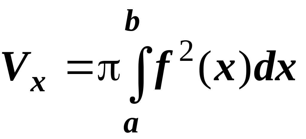 Для тіла, утвореного обертанням навколо осі Ох криволінійної трапеції, обмеженої лініями y=f(x), x=a; x=b; y=0 (рис.6.17) маємо S(x)=y2=f 2(x) .